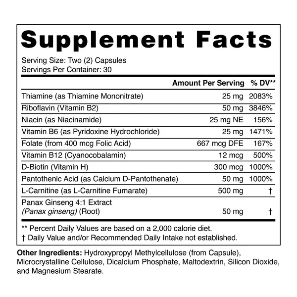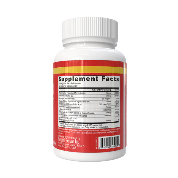 The synergy of Panax Ginseng, B-vitamins and L-Carnitine in Ginseng Plus is helpful in improving performance. B-complex supports energy metabolism by helping to metabolize carbohydrates, fats, and proteins.
